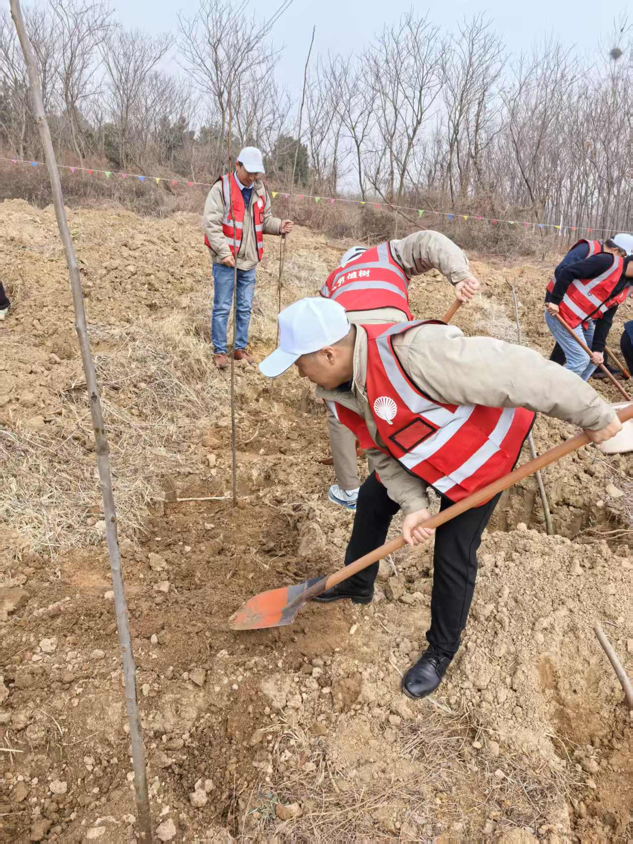 3月12日植樹節(jié)當(dāng)天,工會充分發(fā)揮引領(lǐng)作用,組織員工代表前往旺山開展義務(wù)植樹活動。植樹現(xiàn)場,大家揮鍬鏟土、扶苗填坑、提水澆灌,分工協(xié)作,干勁十足。一株株新栽的樹苗迎風(fēng)挺立,為初春的大地增添勃勃生機(jī)。