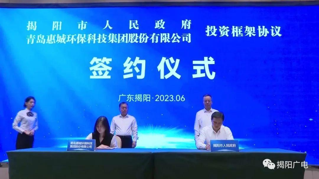 6月18日,揭陽(yáng)市人民政府與青島惠城環(huán)??萍技瘓F(tuán)股份有限公司在揭陽(yáng)市區(qū)簽署投資框架協(xié)議。[ 查看更多 ]