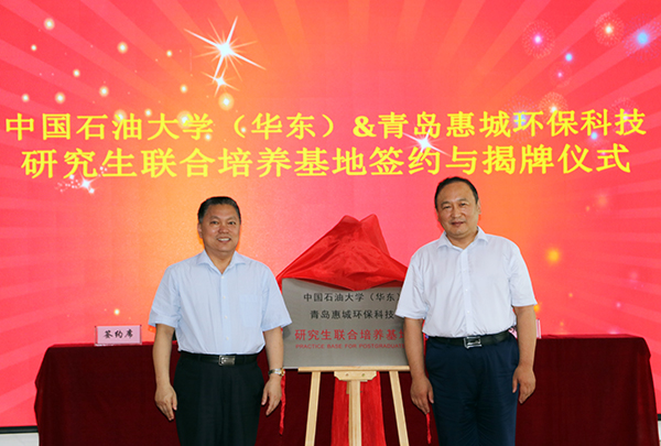 7月15日下午,“中國石油大學(xué)(華東)與青島惠城環(huán)??萍佳芯可?lián)合培養(yǎng)基地”揭牌儀式在公司研發(fā)中心隆重舉行,中國石油大學(xué)(華東)副校長、研究生院院長李兆敏,研究生院常務(wù)副院長閻子峰及學(xué)校其他領(lǐng)導(dǎo)、老師,我公司董事長張新功、常務(wù)副總經(jīng)理葉紅攜公司核心技術(shù)人員及入學(xué)石大的學(xué)生代表共同出席了此次揭牌儀式。