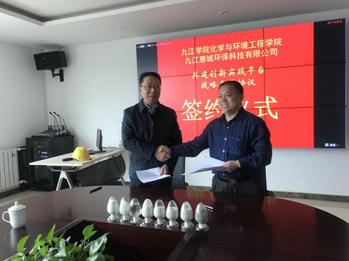 11月29日上午,九江學(xué)院化環(huán)學(xué)院嚴(yán)平院長帶領(lǐng)化環(huán)學(xué)院副院長曹小華教授、占昌朝教授、張新華博士等一行16人蒞臨九江惠城環(huán)??萍加邢薰具M行校企合作深度對接。九江惠城環(huán)保董事長、國家“萬人計劃”張新功教授、公司常務(wù)副總虞勝福等領(lǐng)導(dǎo)熱情接待了嚴(yán)院長一行。校企雙方圍繞項目研發(fā)、人才培養(yǎng)、平臺共建等事宜進行了深入交流,并舉行了校企共建創(chuàng)新實踐平臺戰(zhàn)略合作協(xié)議的簽約儀式。