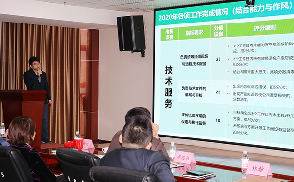 會上,公司35位中高層經(jīng)營管理干部對自己一年來的履職情況和重點工作做了系統(tǒng)總結(jié),對工作中存在的問題和不足展開了深刻剖析,并對2021年度工作思路和重點工作科學(xué)規(guī)劃。臺下人員認(rèn)真聆聽,并依據(jù)考核方案,對述職干部客觀公正地打分評價。