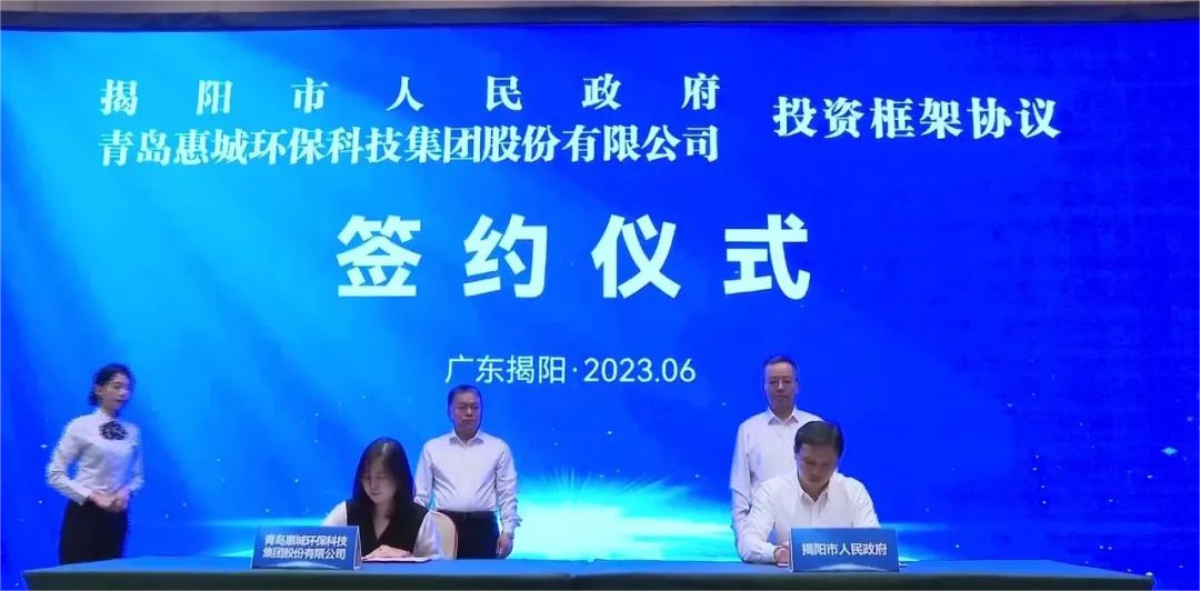 6月18日,青島惠城環(huán)??萍技瘓F股份有限公司與揭陽市人民政府在揭陽市區(qū)簽署投資框架協(xié)議,共同促進石化產(chǎn)業(yè)綠色低碳循環(huán)利用,助推揭陽經(jīng)濟高質(zhì)量發(fā)展。揭陽市市委副書記、市長支光南,惠城環(huán)保創(chuàng)始人、首席技術官張新功出席簽約儀式并上臺鑒簽。